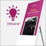 O brilho é a chave quando usamos Digital Signage ao ar livre, os nossos Outdoor Freestanding Digital Poster usam 2,500cd / m² de painéis Ultra Alto Brilho (com um sensor de luz ambiente) 8 vezes mais brilhante que um painel LCD padrão para facilitar a leitura sob luz solar direta.