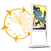 Display Alimentado por Bateria – A bateria polímero de lítio integrada revoluciona a maneira como pode usar a Sinalização Digital. Esta solução de bateria slimline de nível comercial oferece mais de 12 horas de autonomia e pode recarregar completamente em apenas 7 horas.