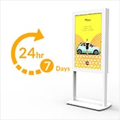 Uso 24/7 – Construído um com painel e componentes de grau comercial, este display foi projetado para estar ligado 24/7 e a vida útil é de mais de 70.000 horas de uso contínuo.