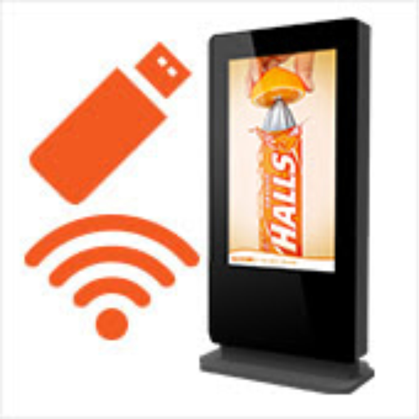 O monitor pode ser atualizado de duas maneiras simples; ou por USB plug and play ou com a nossa solução de rede CMS online.