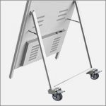 Rodas Traváveis – Este display autónomo é uma solução movível e que pode ser facilmente fechada e movimentada por uma só pessoa. As rodas podem ser bloqueadas para prevenir a deslocação do display.