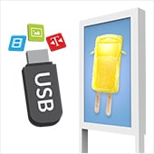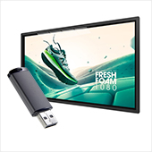Plug & Play – É a maneira mais simples e direta de publicar conteúdo. Basta carregar as imagens e vídeos na pen USB, inseri-la no display, esperar que o conteúdo seja copiado e remover a pen. As suas imagens e vídeos vão ser exibidos num ciclo contínuo.