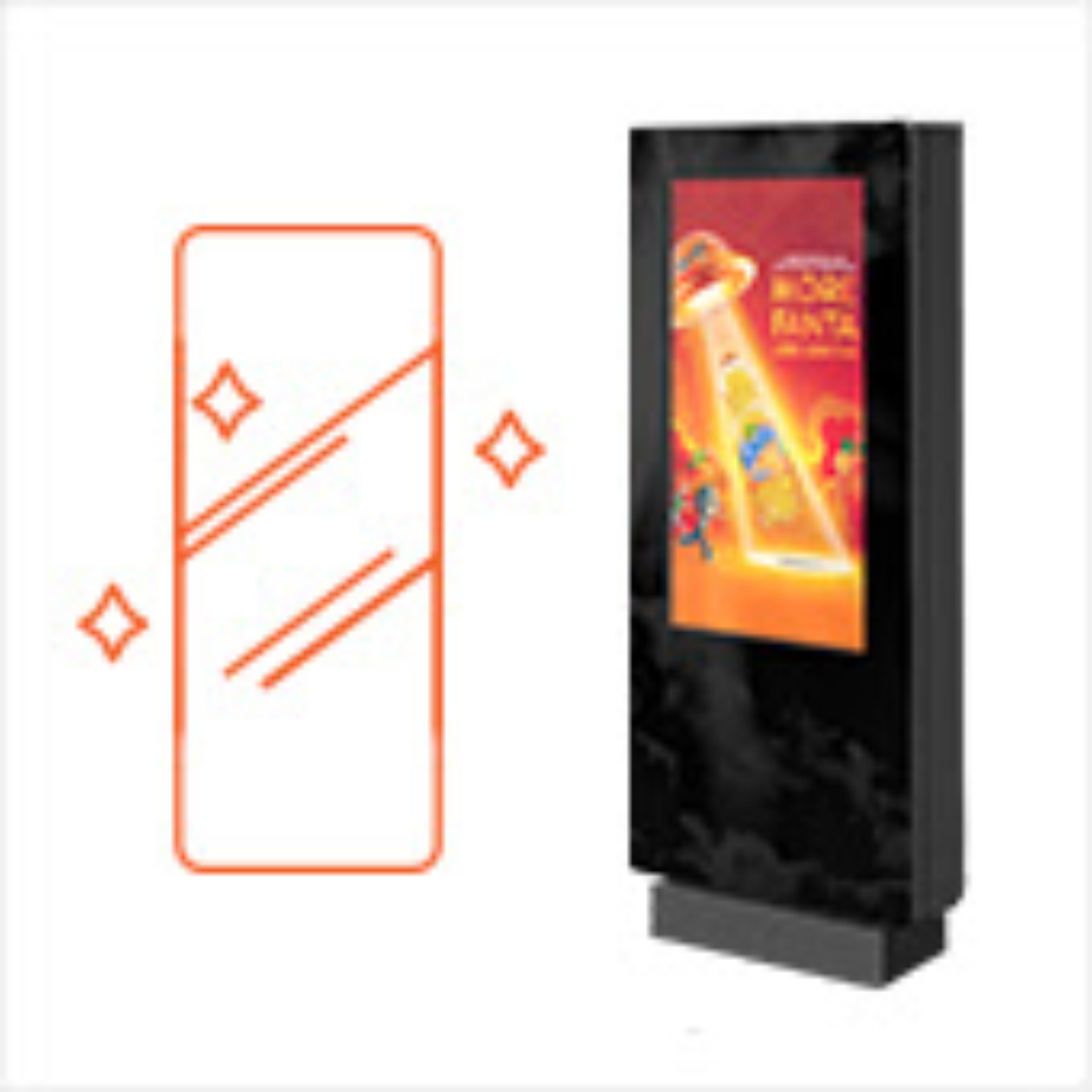 Os Outdoor Freestanding Digital Poster atualizados agora vêm com uma frente de vidro que cobre a face totalmente frontal do ecrã. O vidro antirreflexo temperado também é resistente a riscos, proporcionando uma estética elegante semelhante a um tablet com uma nitidez perfeita.